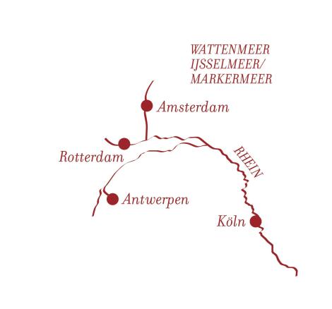 Diese Route erwartet Sie: ab Köln - Lichter- / Hafenrundfahrt - Antwerpen (BE) - Rotterdam (NL) - Amsterdam (NL) mit Liegezeit über Nacht bis zum nächsten Abend - Flusstag - Köln